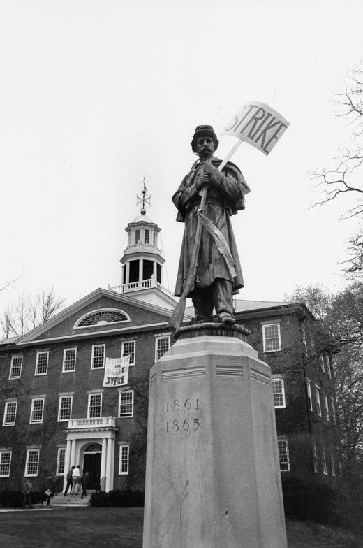 Paid for by Harvey Rice (Williams Class of 1824), the Haystack Monument was dedicated in July 1867. Although Rice originally planned a life-size haystack made of sandstone, a monument was decided upon. Made of ‘silver blue’ marble, it was erected by the Berkshire Marble Company of Alford, MA. Several of the trees around the monument were brought by groups from around the world, contributing species not commonly found in Williamstown to the arboretum of Williams College. We hope you will photograph the monument and surrounding trees so we may add them to our collection for posterity.